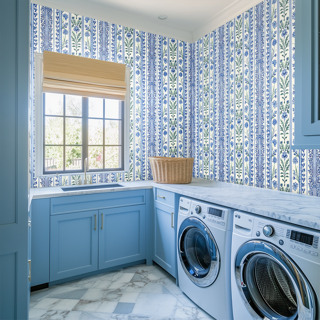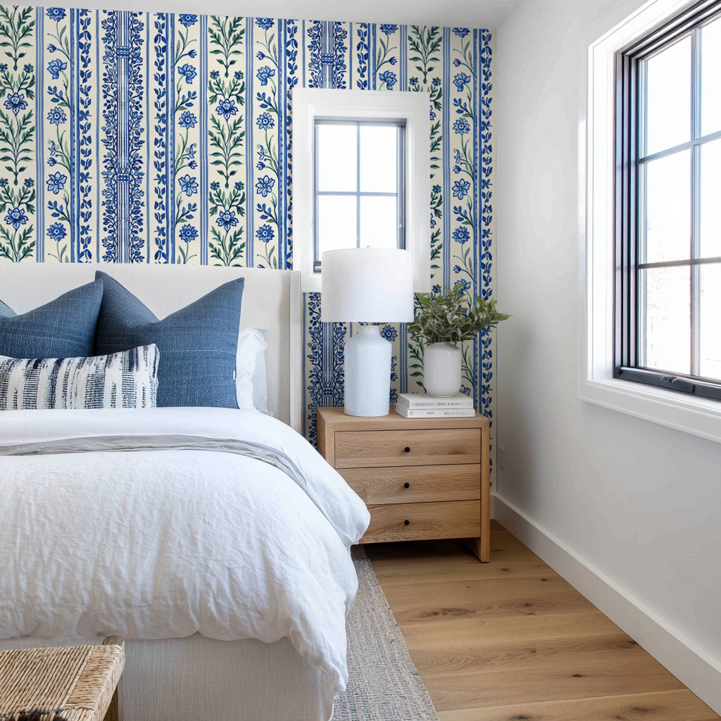 Enchanted Garden transforms your space with a whisper of whimsy and a dash of old-world charm. Envelop yourself in this timeless tapestry of blue blooms. It's like a secret garden for your walls, no key is required!