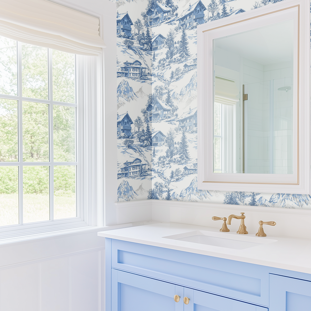 Transform any room into a chilly winter wonderland with Gunnison Wallpaper. Featuring a playful scene of blue snowy mountains and a cozy snow village, it brings a magical, frosty charm indoors. Perfect for adding a splash of cool adventure and whimsy to your space, this wallpaper invites you to explore a landscape where snowflakes dance and mountains stand tall—all from the warmth of your home.