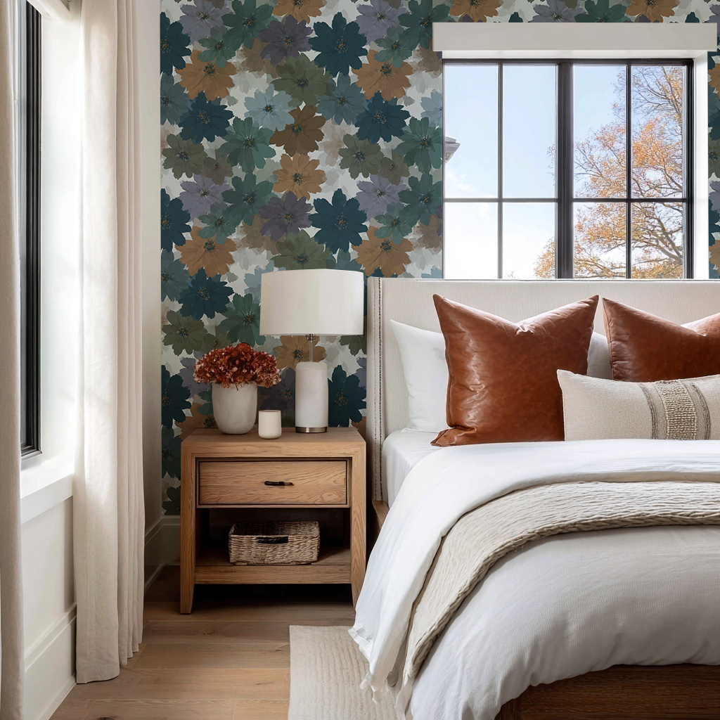 Transform your space with Twilight Petals Wallpaper, featuring moody earth tones and blooming patterns in burnt orange, deep blue, and lush green. This playful design adds depth and warmth to any room, creating a cozy yet vibrant atmosphere that invites imagination and comfort. Perfect for adding character and charm to your walls while embracing nature’s darker, richer palette.