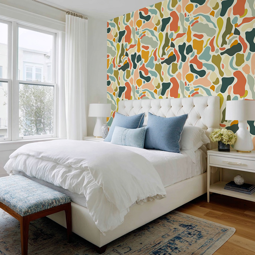 Slip into a summer state of mind with "Whimsical Terra," where vibrant orange squares dance across a soft lavender backdrop. It's the ultimate blend of playful chaos and sweet, structured bliss for your space.